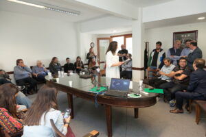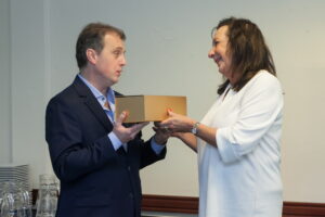 Patricia Lussich recibe de manos de Antonio Oliva, nuevo presidente de AUDAP un presente.